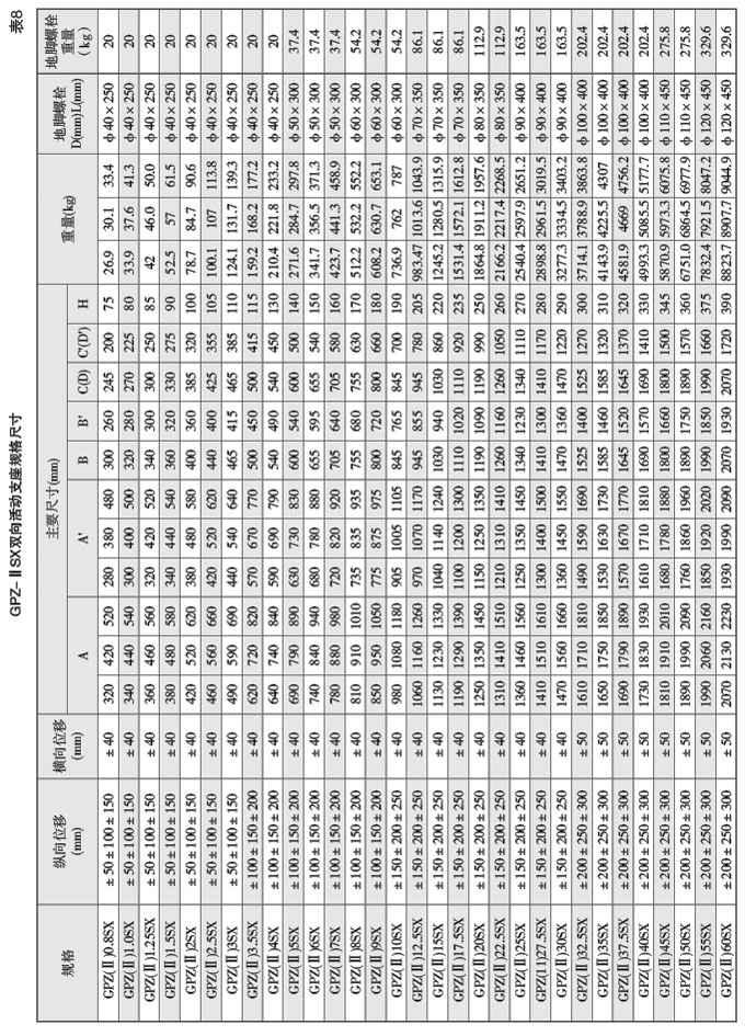a.雙向活動支座(多向活動支座):具有豎向承載、豎向轉(zhuǎn)動和多向滑移性能,代號為SX;